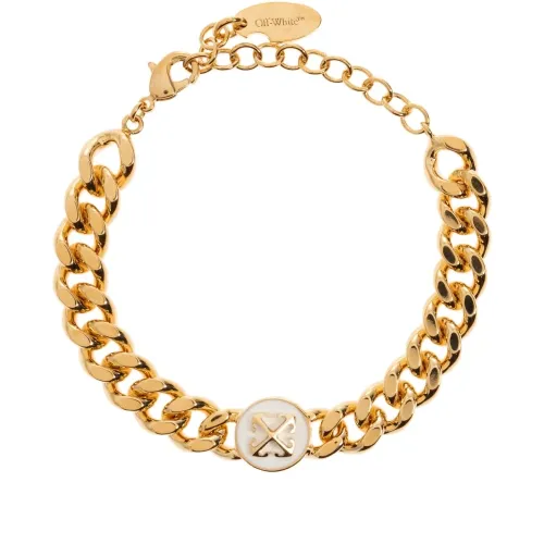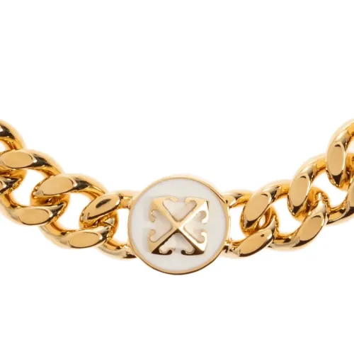 золотистый оттенок цепочка с крупными звеньями фирменный мотив стрел эмалированные детали застежка-карабин