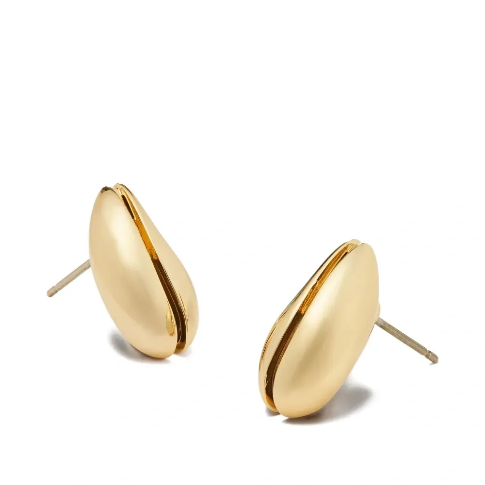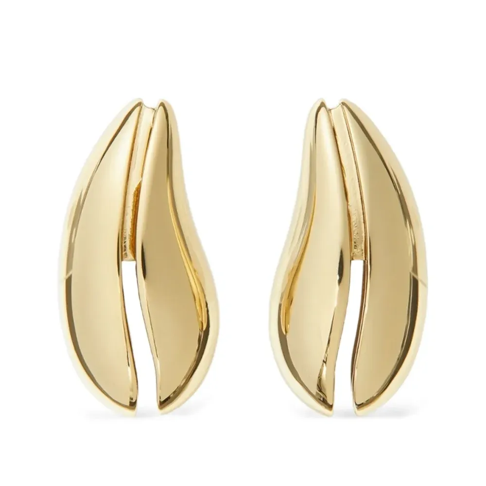 светлая латунь изогнутый дизайн полированная отделка деталь с разрезом застежка-гвоздик минималистский стиль Эти серьги идут в паре.