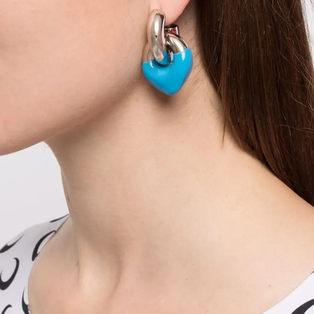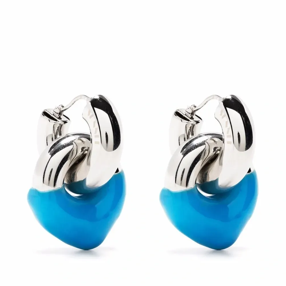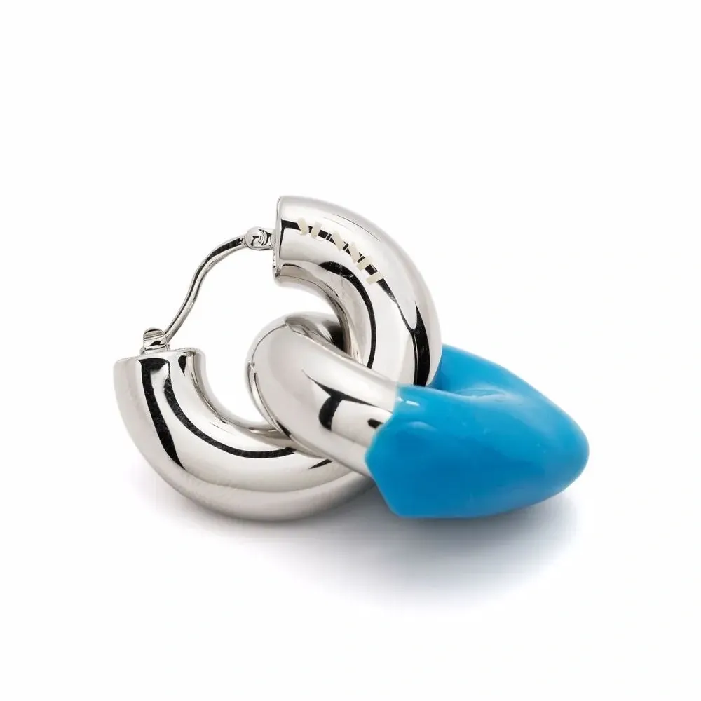 Сочетание двух оттенков, резиновые накладки, выгравированный логотип и застежка-бабочка. В комплект входят две серьги.