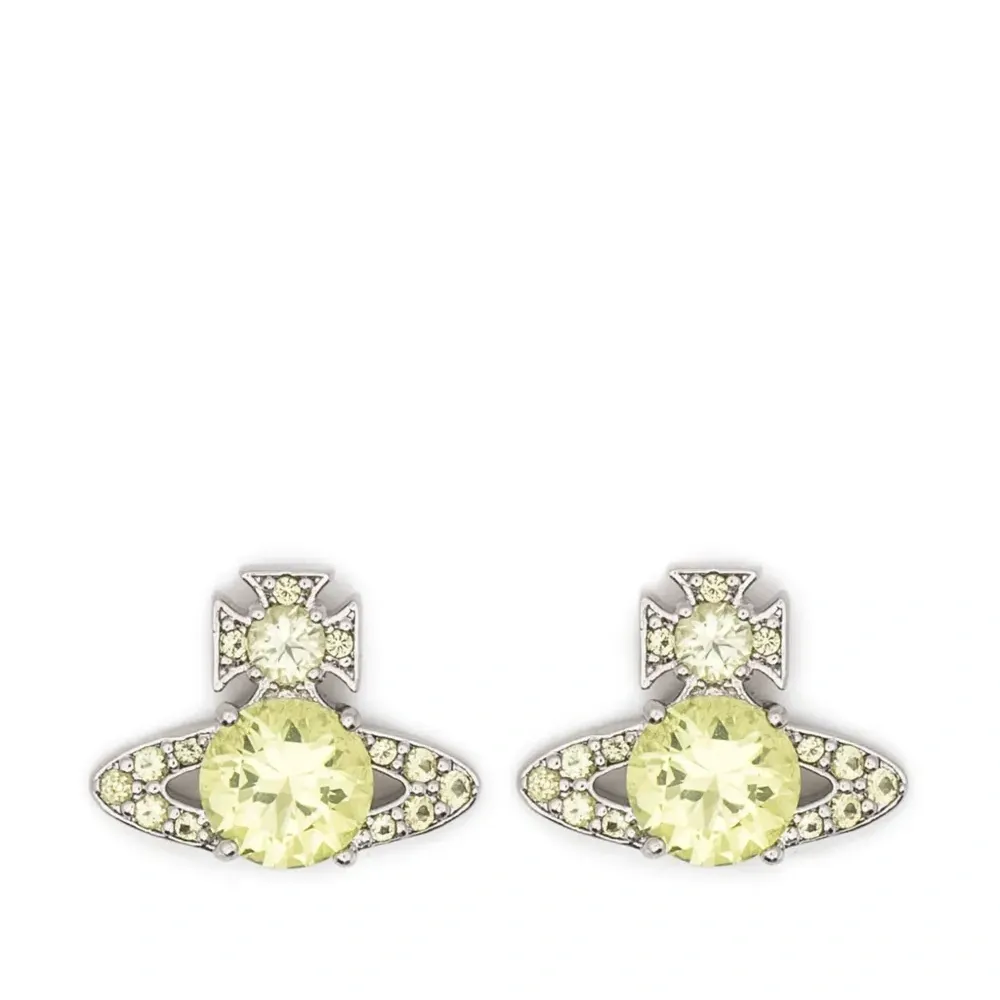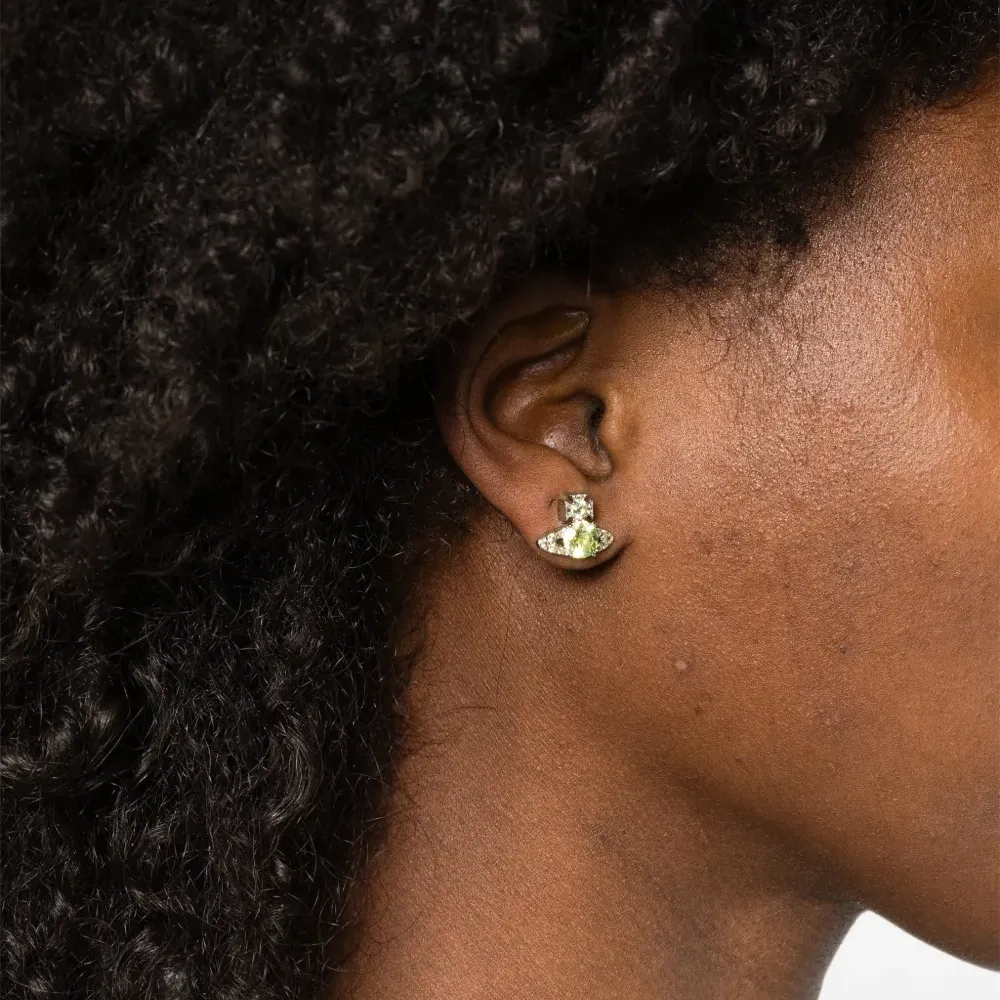 серьги-гвоздики с украшением в виде шара серебристого и зелёного цвета