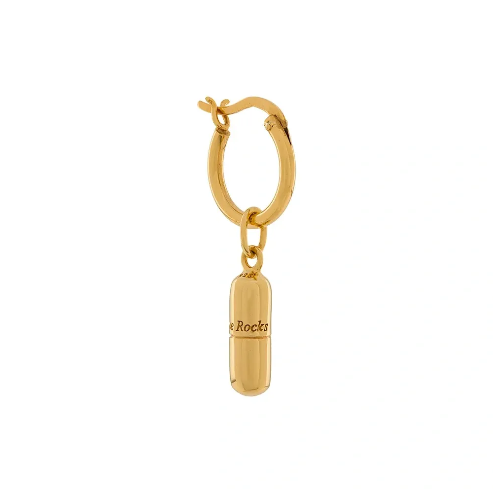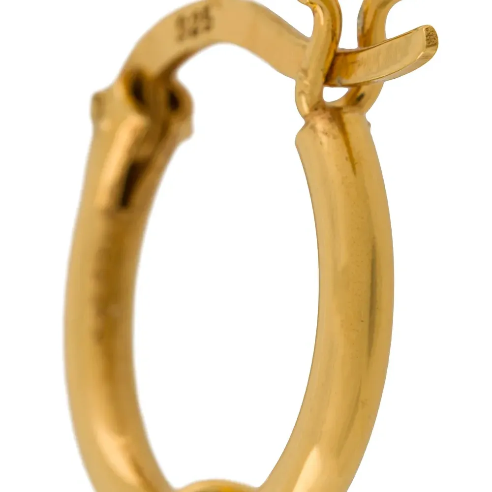 Серьги-кольца из позолоченного серебра от True Rocks. Застежка-стоппер, гравировка логотипа и изогнутая форма. Пожалуйста, обратите внимание, что это единичная серьга.