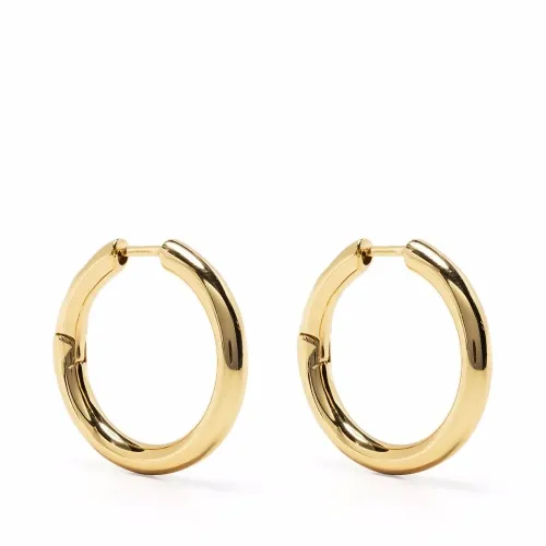 Крупные кольца и застежка на зажиме. В комплект входят две серьги.
