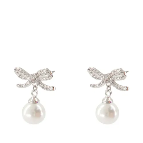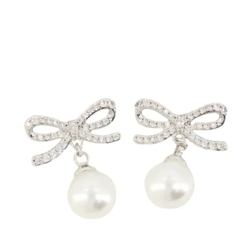 серьги серебристого цвета с бантиком и жемчужными деталями. Поставляются в паре. При повседневном использовании и воздействии внешних факторов блеск драгоценных камней и золотых поверхностей может уменьшаться. Для ухода используйте специальные неабразивные средства, предназначенные для чистки украшений.