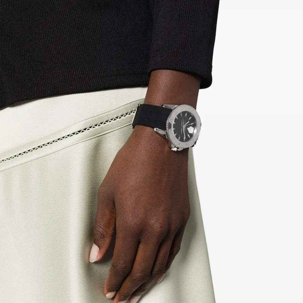 Черный, нержавеющая сталь, декор Tiger Head, автоматический механизм, циферблат с индексами, хрустальные часовые индексы, прямоугольные вытянутые стрелки, круглый корпус, резиновый ремешок, застежка на пряжке и водонепроницаемость до 50 метров/5 АТМ. На этот товар распространяется стандартная годовая гарантия от производителя.