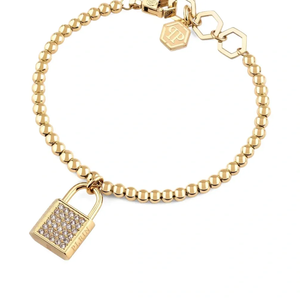 Браслет с подвеской-замком из золотистых кристаллов