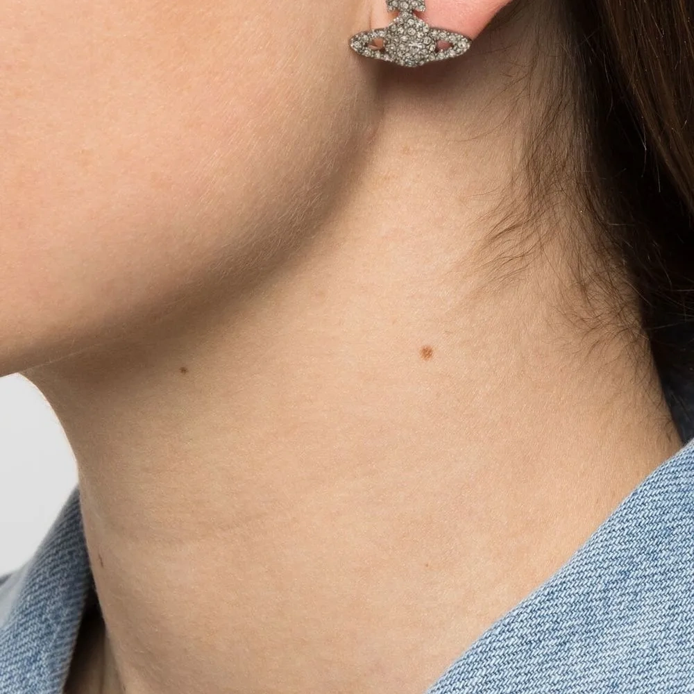 Серебристый, декор из кристаллов и заклепки с логотипом.