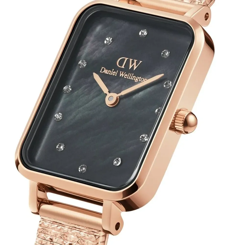 Безель с гравированным логотипом, декор из кристаллов и прямоугольная форма.