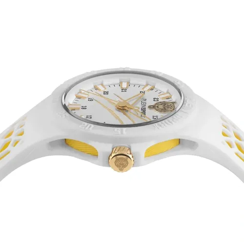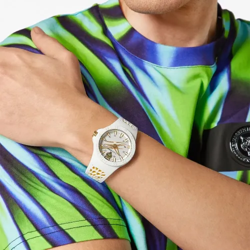 Нержавеющая сталь, поликарбонат, кварцевый механизм, знаковый декор Tiger с изображением тигра, циферблат с индексами, арабский циферблат, круглый корпус, прямоугольные вытянутые стрелки, вырезные детали, резиновый ремешок, застежка на пряжке и водонепроницаемость до 50 метров/5 АТМ. На этот товар распространяется стандартная двухлетняя гарантия от производителя.