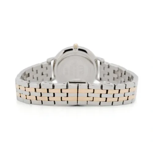 Корпус из нержавеющей стали, кварцевый механизм, прямоугольные вытянутые индексы, белый, круглый корпус, инкрустированный кристаллами безель, тонкие закругленные стрелки, серебристый, золотистый, браслет из нержавеющей стали, застежка-клипса и водонепроницаемость до 30 метров/3 АТМ. На этот товар распространяется стандартная двухлетняя гарантия от производителя.