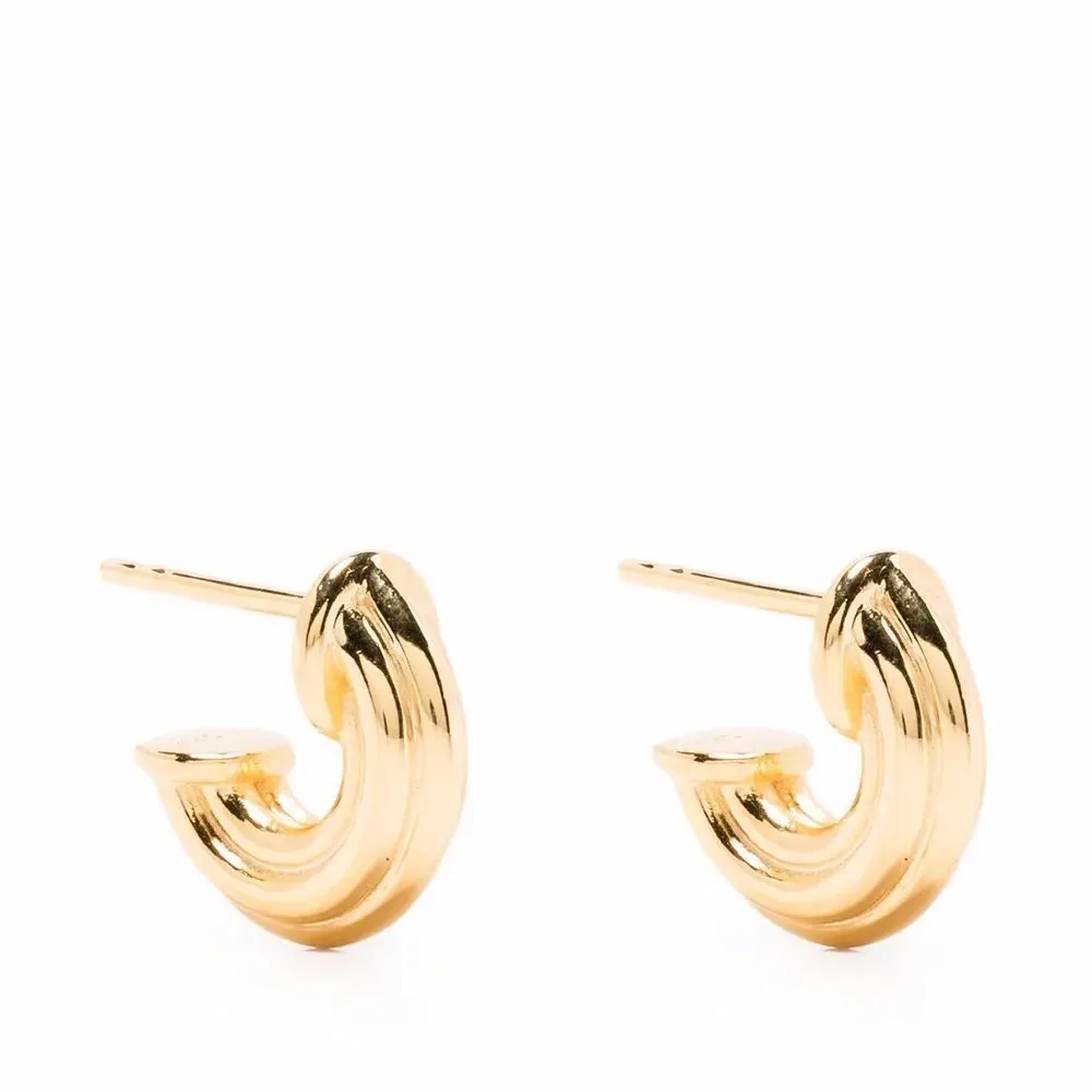 Позолоченное серебро 925 пробы (вермей), крупные кольца и для проколотых ушей. В комплект входят две серьги.
