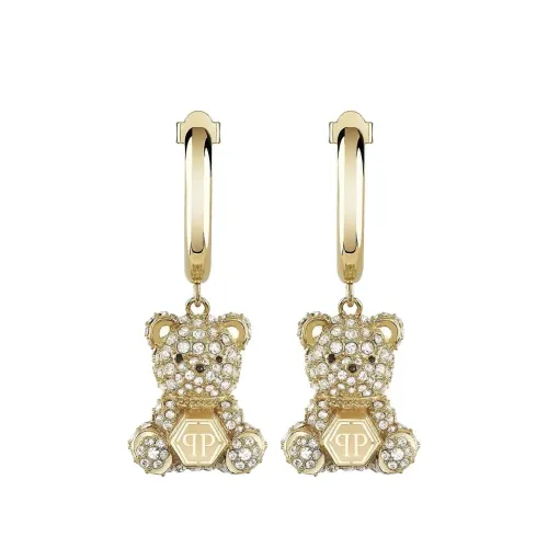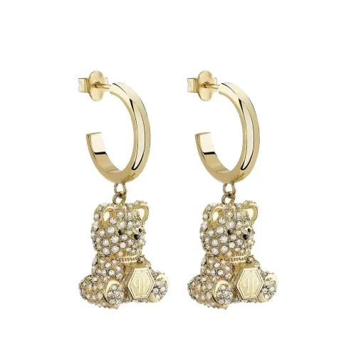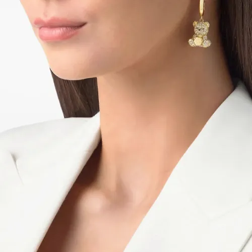 золотые серьги-кольца с украшением в виде кристального медвежонка. Эти серьги идут в паре. Обычное повседневное использование и воздействие внешних факторов могут уменьшить блеск драгоценных камней и золотых поверхностей. Для ухода используйте специальные неабразивные средства, предназначенные для чистки ювелирных изделий.