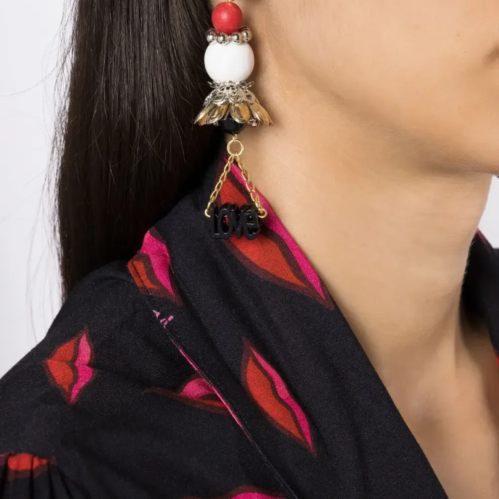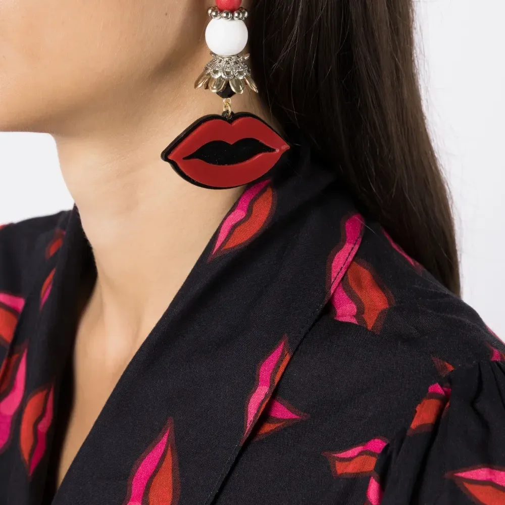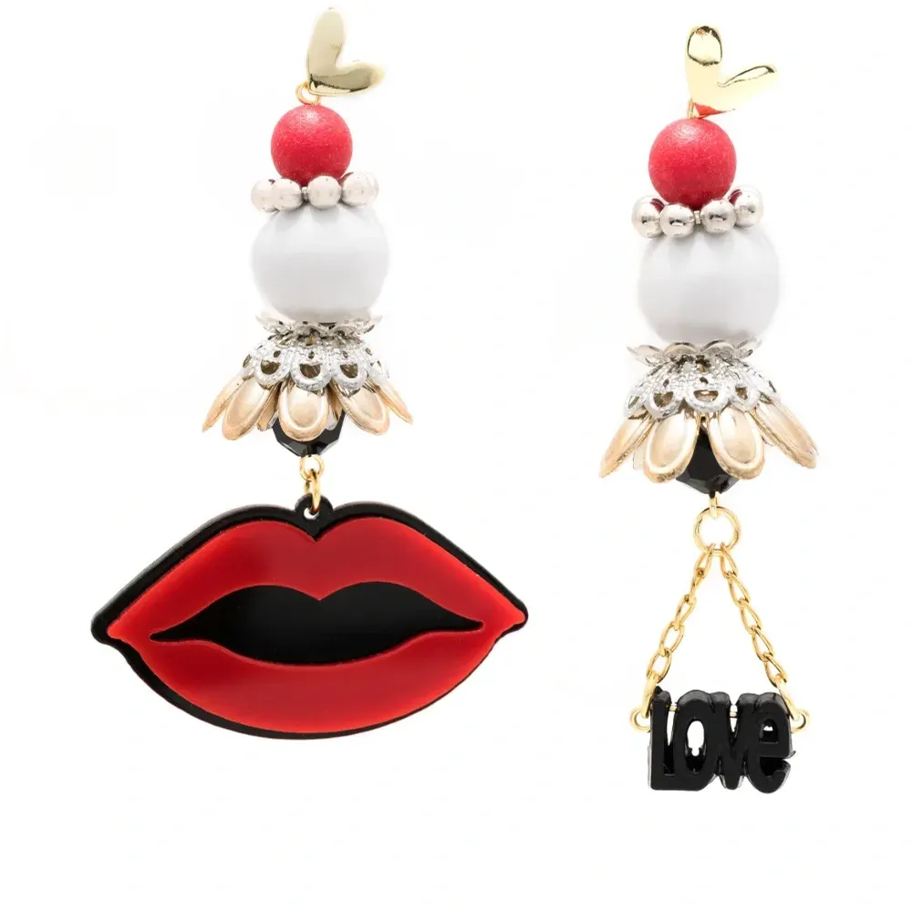 Кроваво-красный, разноцветный, асимметричная форма, серьги-подвески и застежка-бабочка. В комплект входят две серьги.