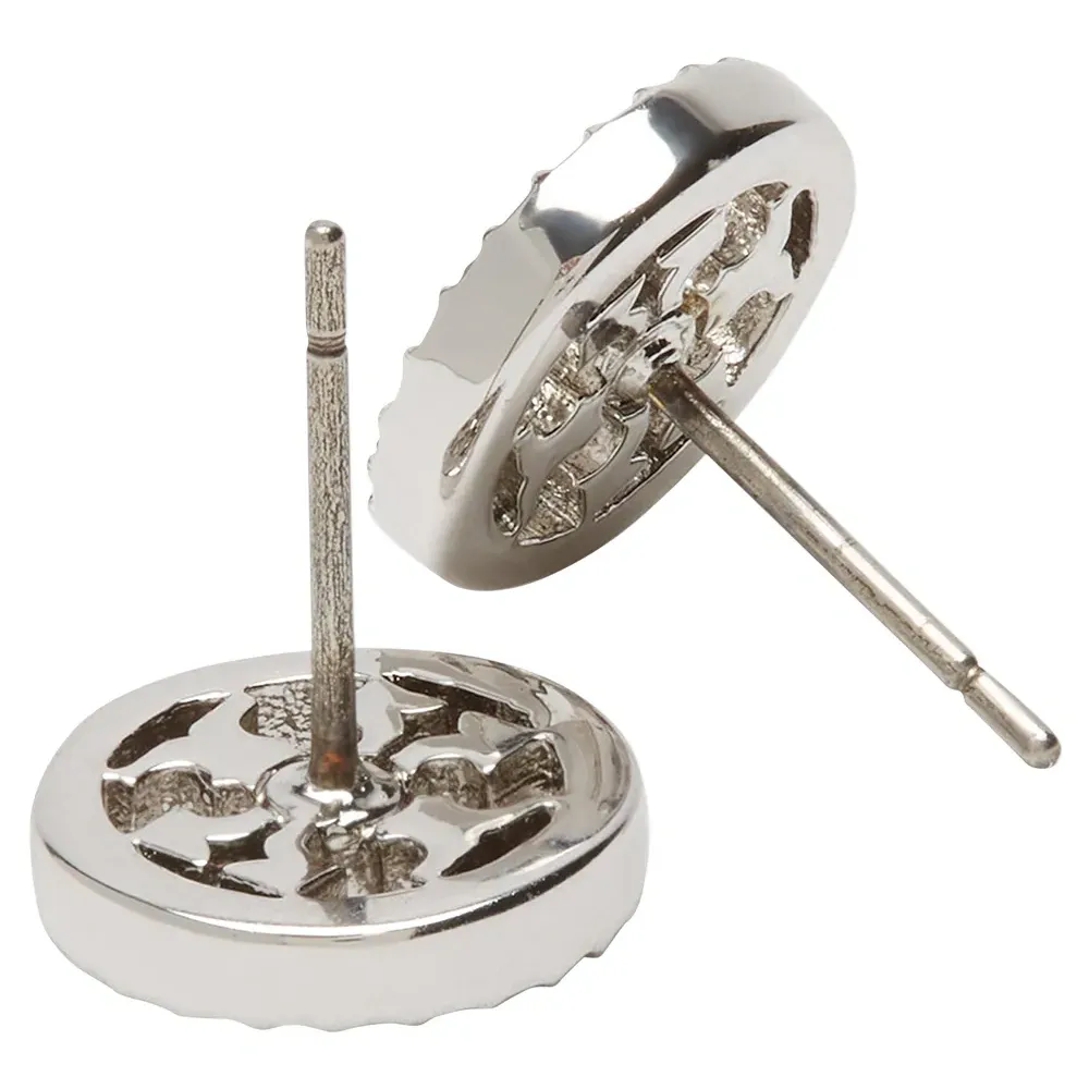 Серебристый, нержавеющая сталь, круглые серьги-гвоздики, декор из кристаллов и для проколотых ушей. В комплект входят две серьги.