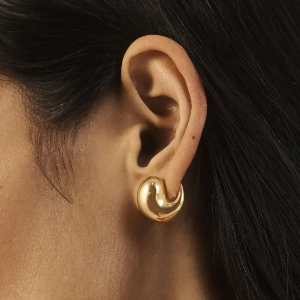 Серебро с покрытием из переработанного 18-каратного золота и глянцевая фактура. В комплект входят две серьги. На все украшения Monica Vinader, изготовленные вручную, действует гарантия в течение пяти лет с момента покупки. Узнать больше о том, какие товары получают отметку «Ответственный выбор», можно из материала «Как мы оцениваем экологичность и этичность».