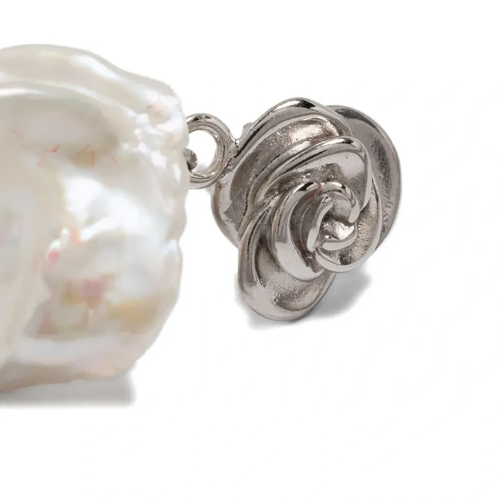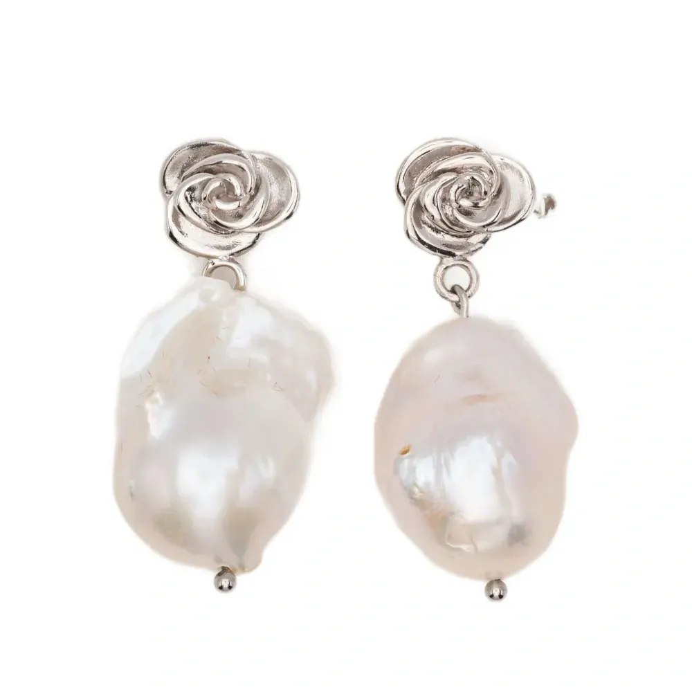 серебристый оттенок декор в виде розы декор из жемчуга пресноводного свадебный/свисающий дизайн застежка-гвоздик Эти серьги идут в паре.
