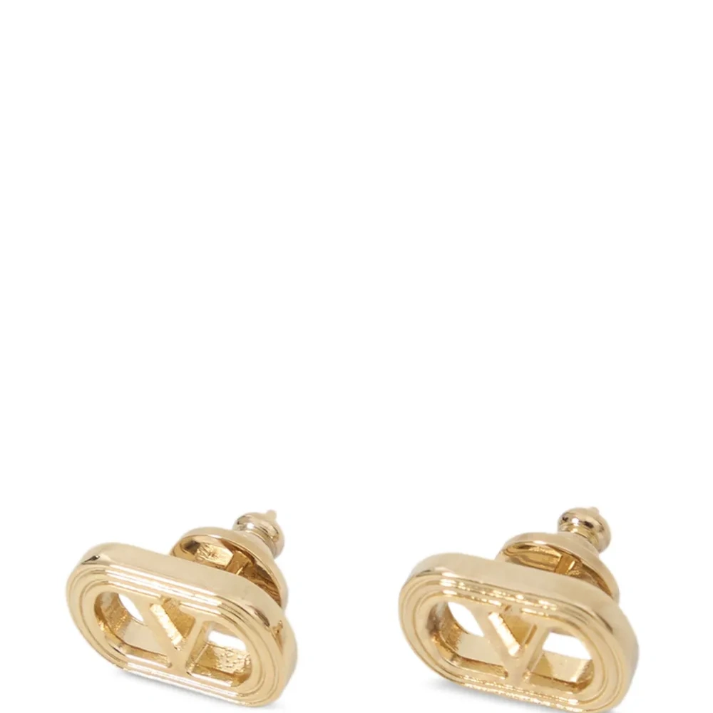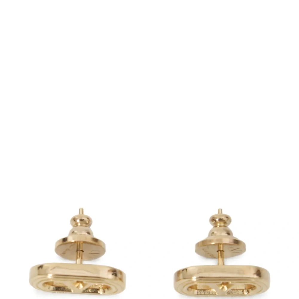 Золотистого цвета, мотив с логотипом, застежка-гвоздик. Обычное повседневное использование и воздействие внешних факторов могут уменьшить блеск драгоценных камней и золотых поверхностей. Для ухода используйте специальные неабразивные средства, предназначенные для чистки украшений. Эти серьги продаются в паре.