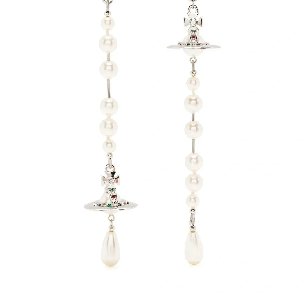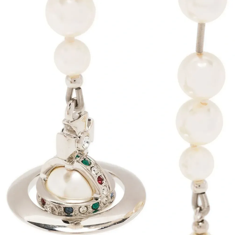 Кремовый, детали с жемчугом, серебристая фурнитура, декор из кристаллов, знаковый декор Orb, застежка-штифт и для проколотых ушей. В комплект входят две серьги.