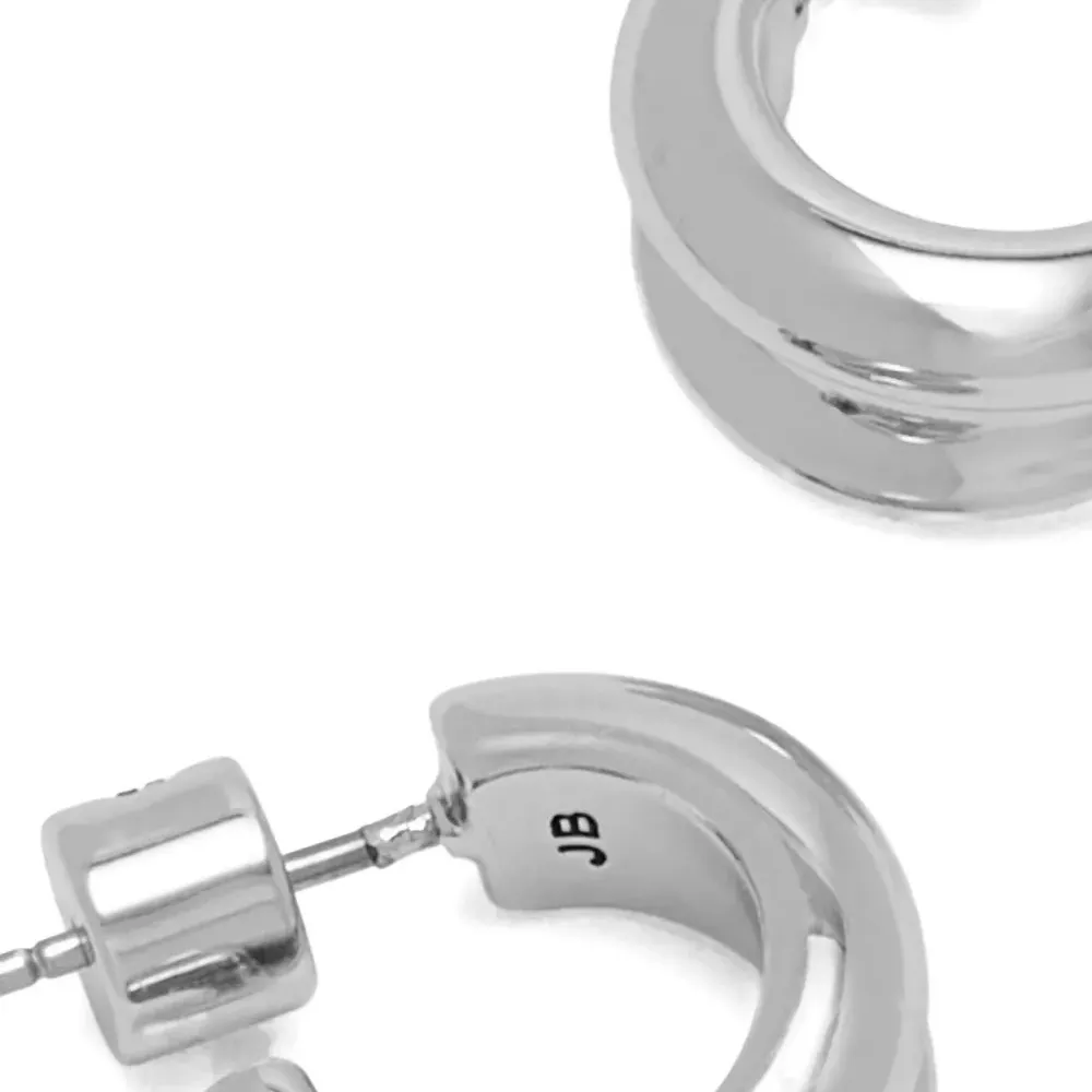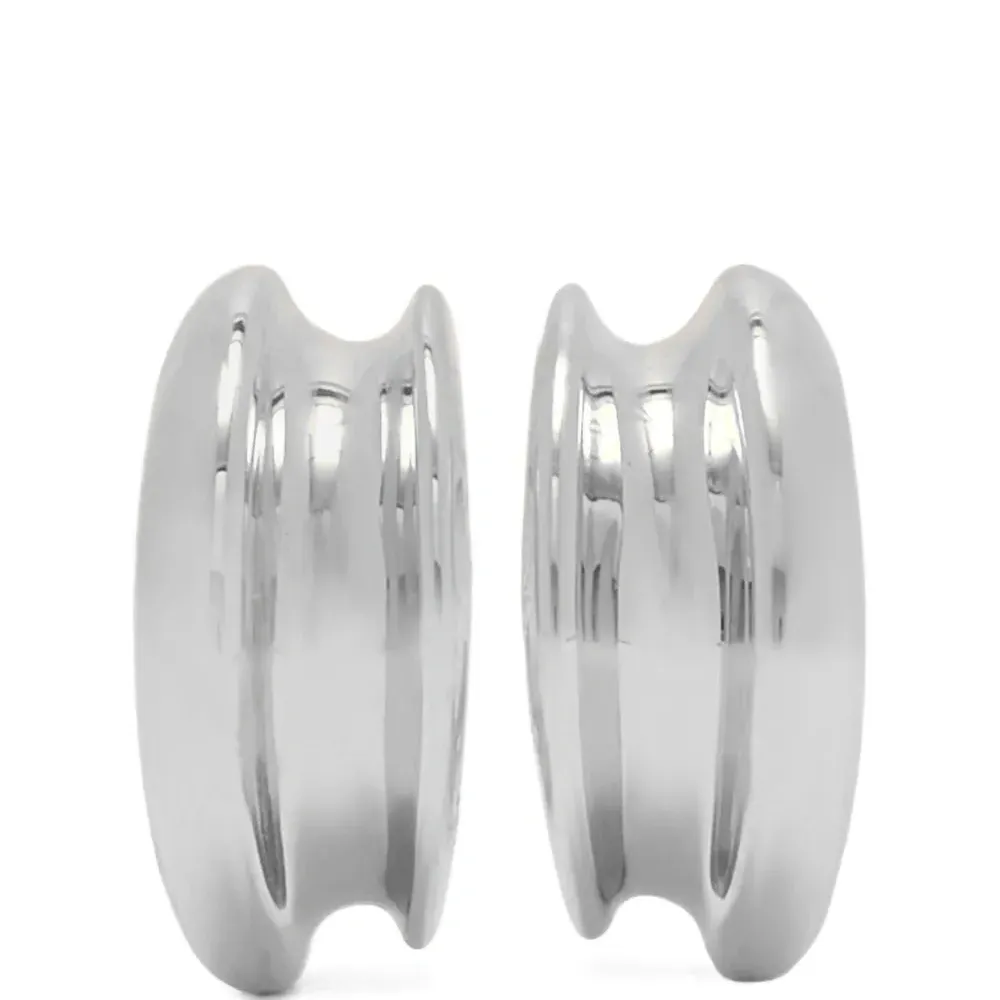 Серебристый цвет, полированная отделка, дизайн маленьких колец для проколотых ушей, застёжка-гвоздик. Эти серьги идут в паре.