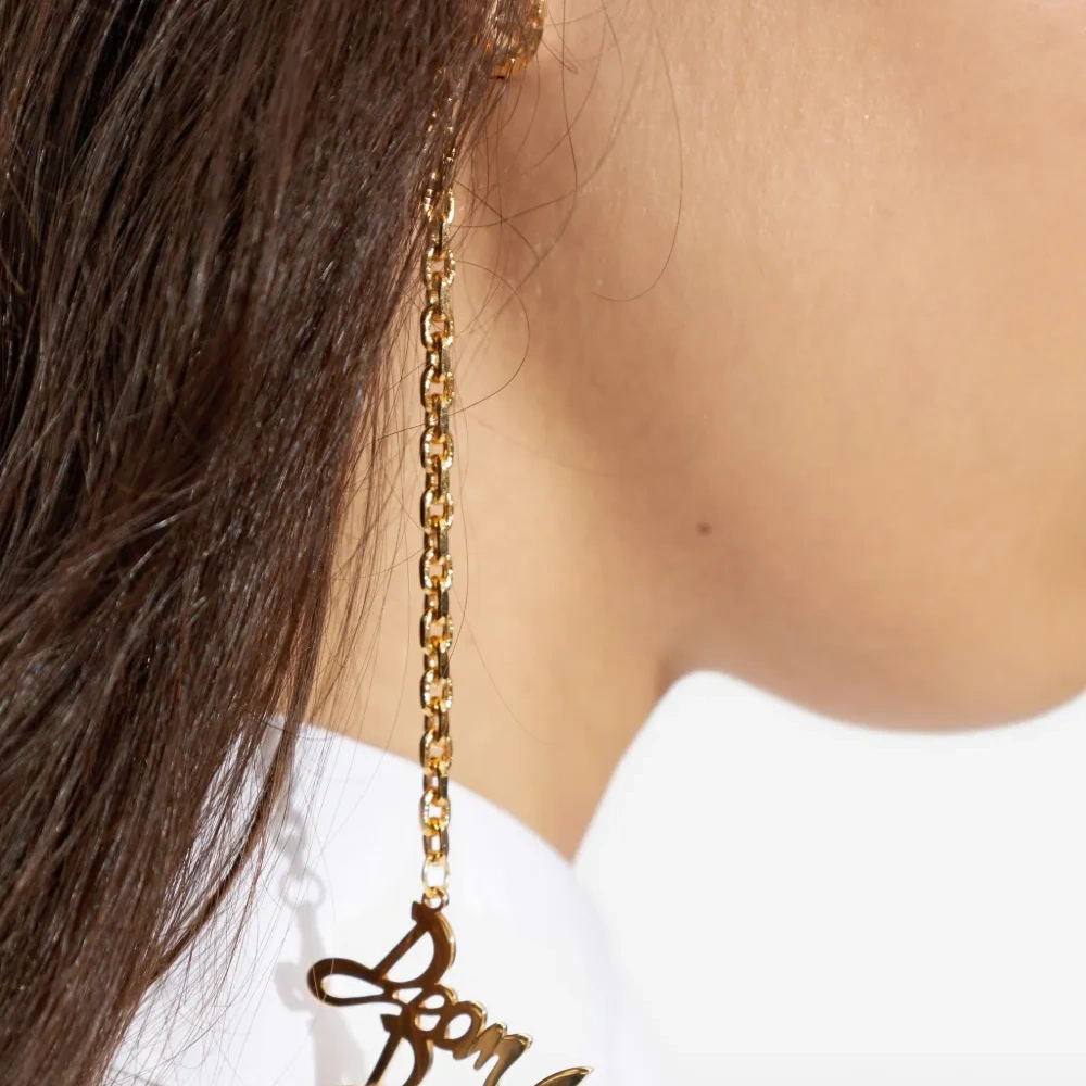 Серьги с надписью на цепочке