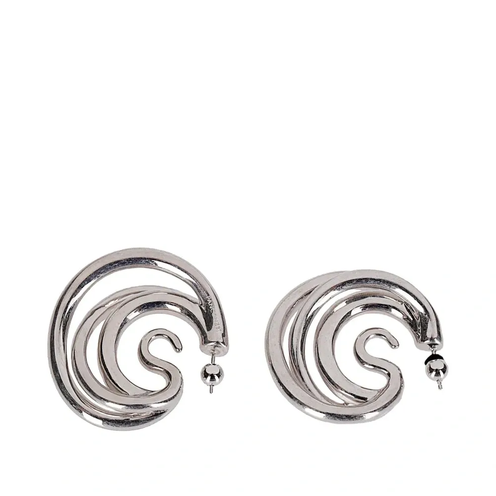 серебристый дизайн с кругами изогнутая форма застежка-гвоздик полированная отделка для проколотых ушей Эти серьги идут в паре.