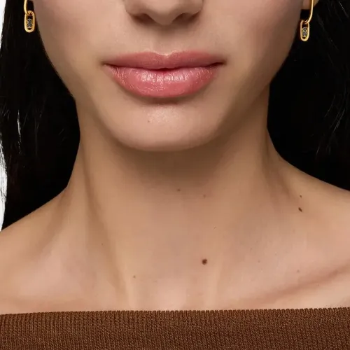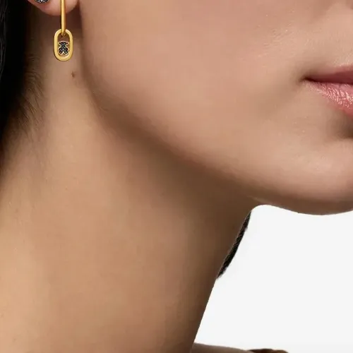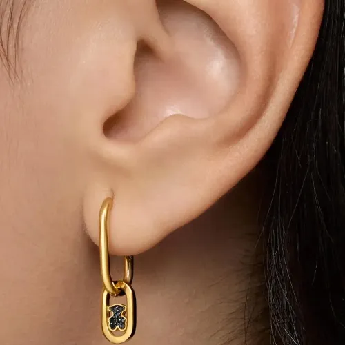 отделка в виде медвежонка золотистого цвета, пружинный замок; эти серьги поставляются в паре.