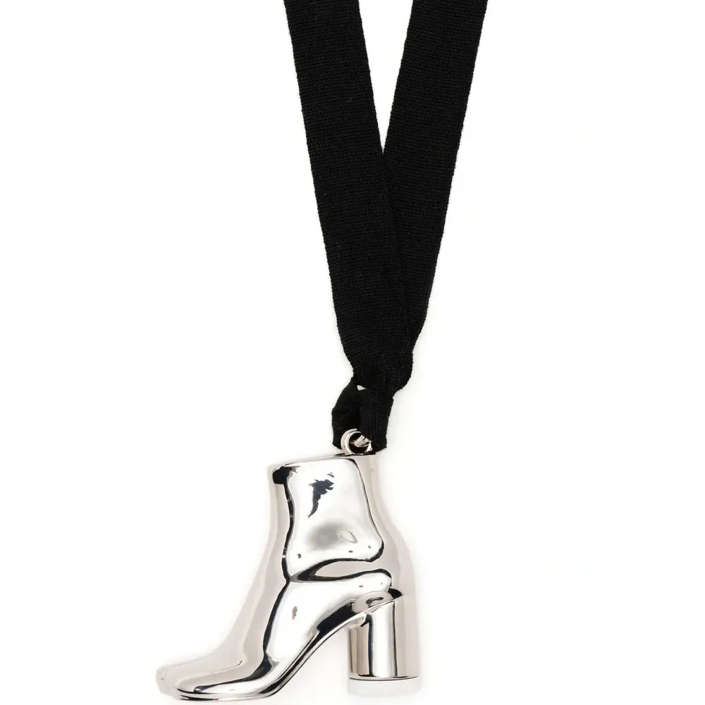 Подвеска-акцент, регулируемый ремешок на шею и глянцевая фактура.