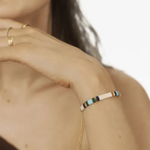 Серебро с покрытием из переработанного 18-каратного золота, глянцевая фактура, яшма, декор из бисера, регулируемая скользящая застежка и выгравированный логотип. На все украшения Monica Vinader, изготовленные вручную, действует гарантия в течение пяти лет с момента покупки. Узнать больше о том, какие товары получают отметку «Ответственный выбор», можно из материала «Как мы оцениваем экологичность и этичность».