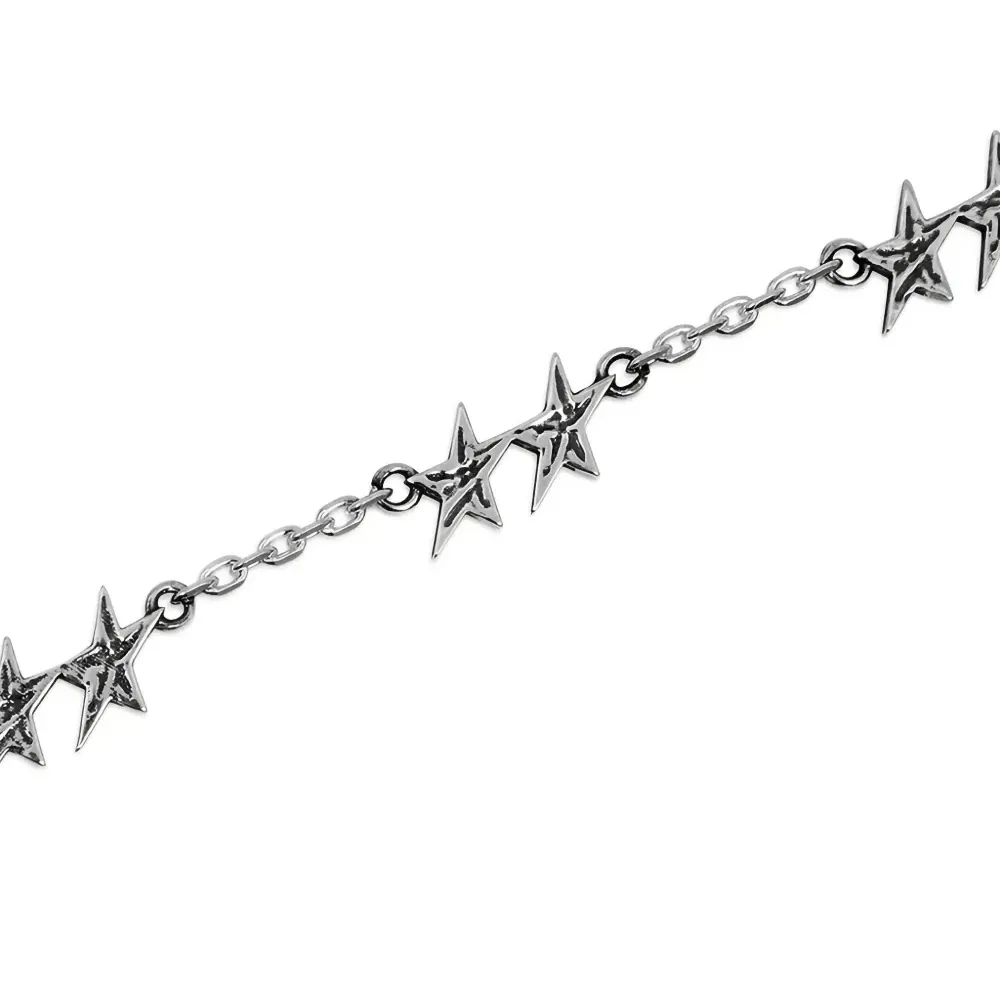 серебряная цепочка с деталями в виде звезды, застежка из драгоценного металла