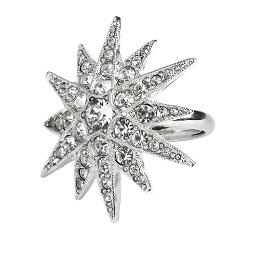 серебристый тон, украшение в виде звезды с кристаллами, полированная отделка