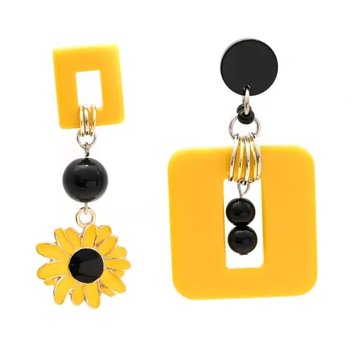 Горчично-желтый, серьги-подвески, асимметричная форма и застежка-бабочка. В комплект входят две серьги.