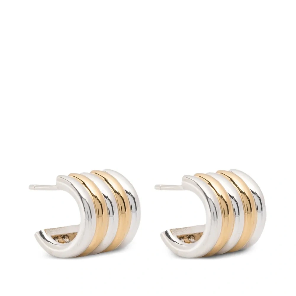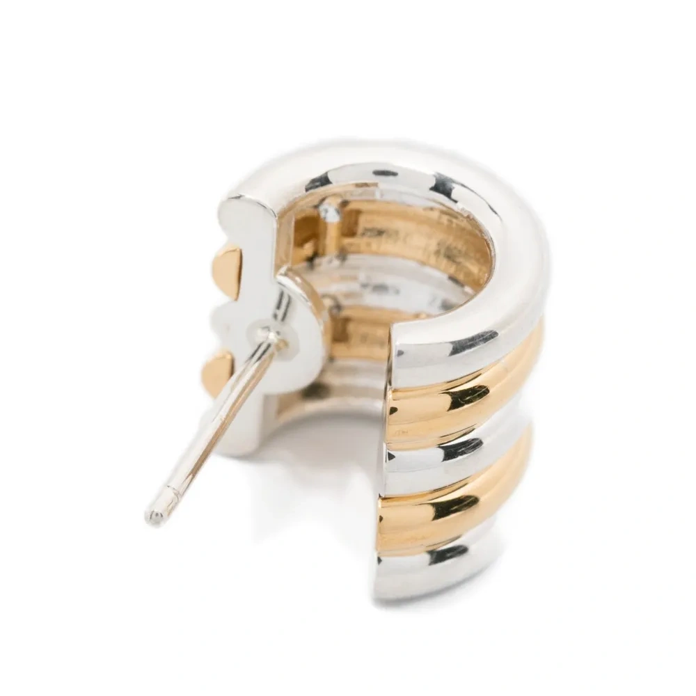 Серебристо-золотистый оттенок, полосатый дизайн, форма кольца, застёжка-гвоздик. К этому изделию прилагается защитный мешочек для хранения. Обычное ежедневное использование и воздействие внешних факторов могут уменьшить блеск драгоценных камней и золотых поверхностей. Для ухода используйте специальные неабразивные средства, предназначенные для чистки украшений.