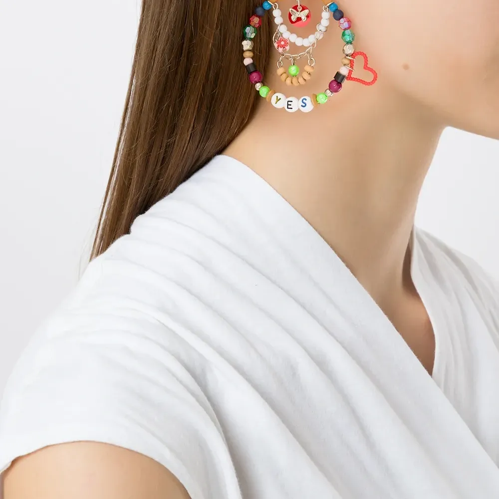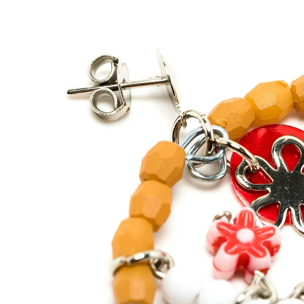 Застежка-бабочка, детали из бисера, серьги-подвески и для проколотых ушей. В комплект входят две серьги.