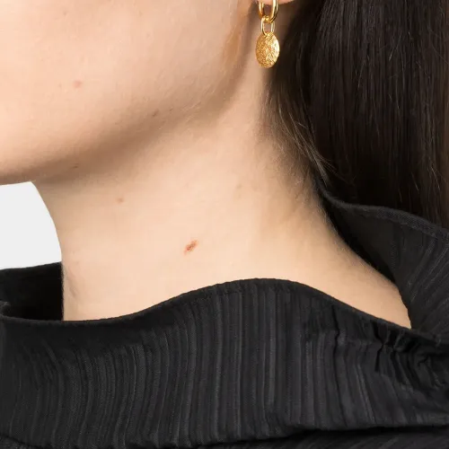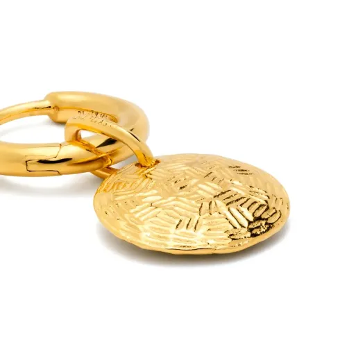 Золотистый, серебро 925 пробы с покрытием из 9-каратного золота, тисненая деталь и подвеска. В комплект входит одна серьга.