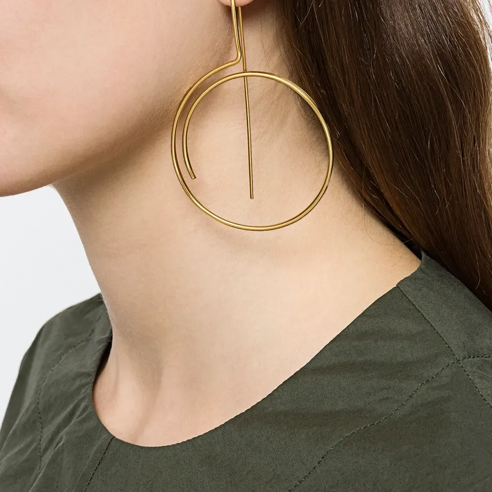 Позолоченная серебряная серьга 'Technofossils Curve' от Wouters & Hendrix. Застежка на крючок, вручную изогнутый дизайн. Пожалуйста, обратите внимание, что это единичная серьга.