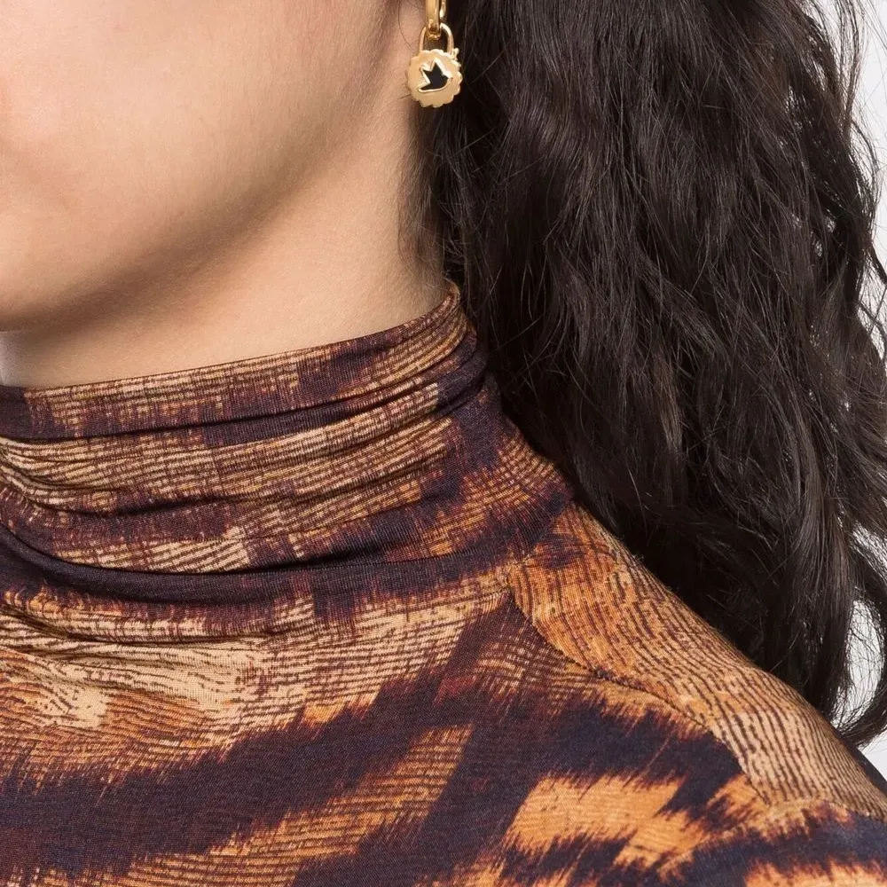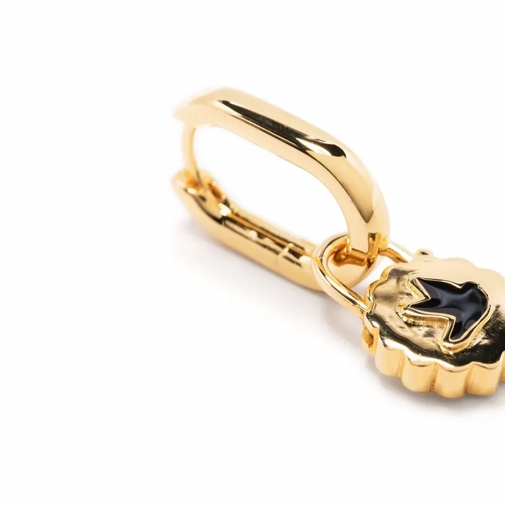 Серьги-хагги, гравировка, деталь из эмали и для проколотых ушей. В комплект входит одна серьга.