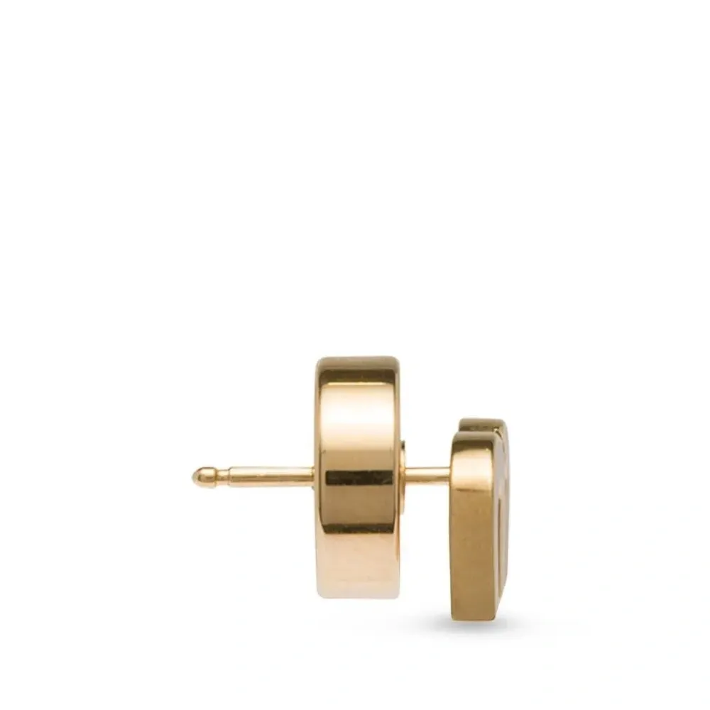 Золотистый, золотистая фурнитура, золотистый металлический логотип, выгравированный логотип, застежка-штифт и для проколотых ушей. В комплект входят две серьги.