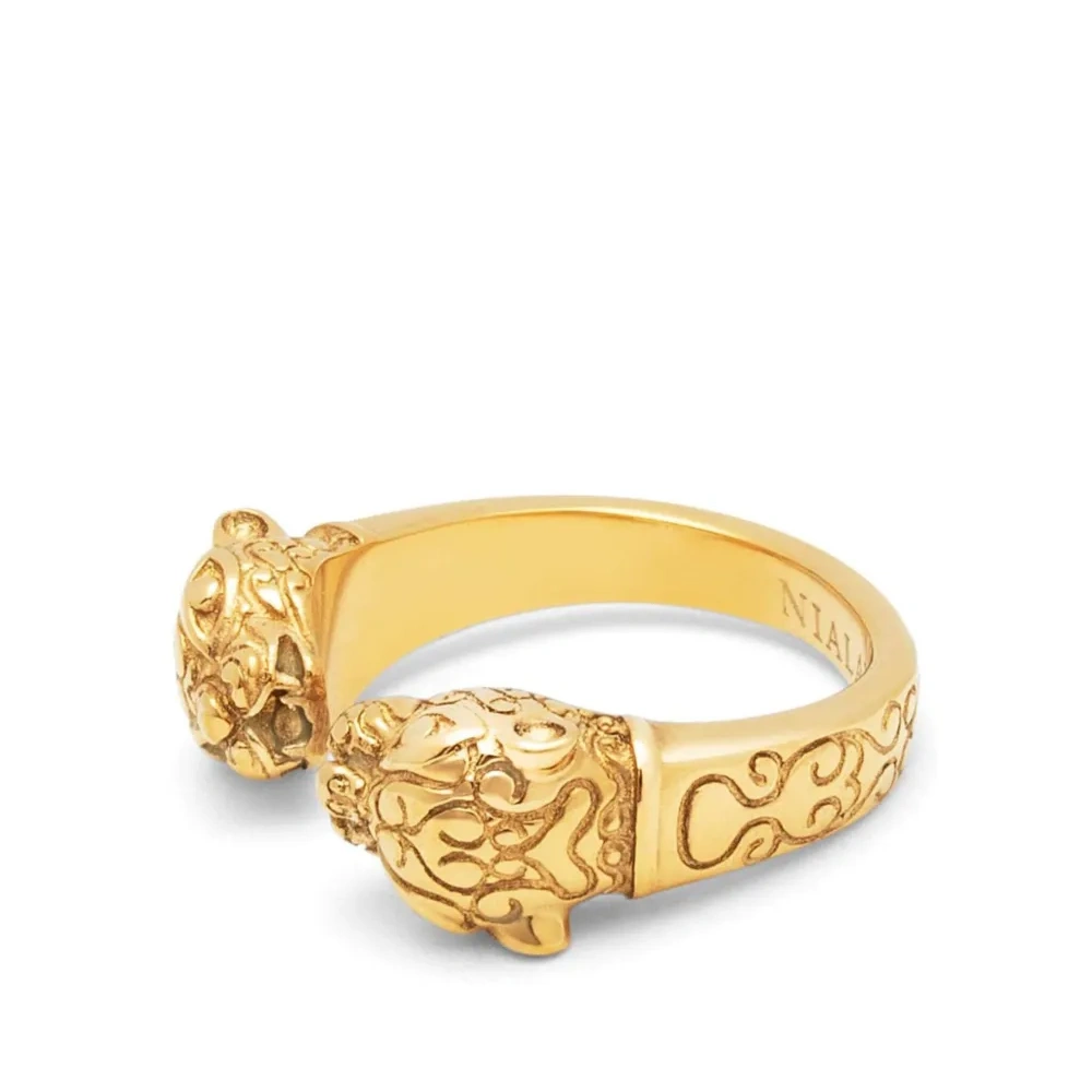 Кольцо с головами пантер из позолоченного серебра от Nialaya Jewelry. На все товары Nialaya Jewelry действует годовая страховка с момента покупки изделия. POSITIVELY CONSCIOUS: Агентство Good On You, автор рейтинга ответственных брендов, оценило Nialaya Jewelry на 3 из 5 баллов. Этот бренд отдает предпочтение локальному производству, чтобы уменьшить углеродный след, следит за цепочками поставок и не использует материалы животного происхождения.