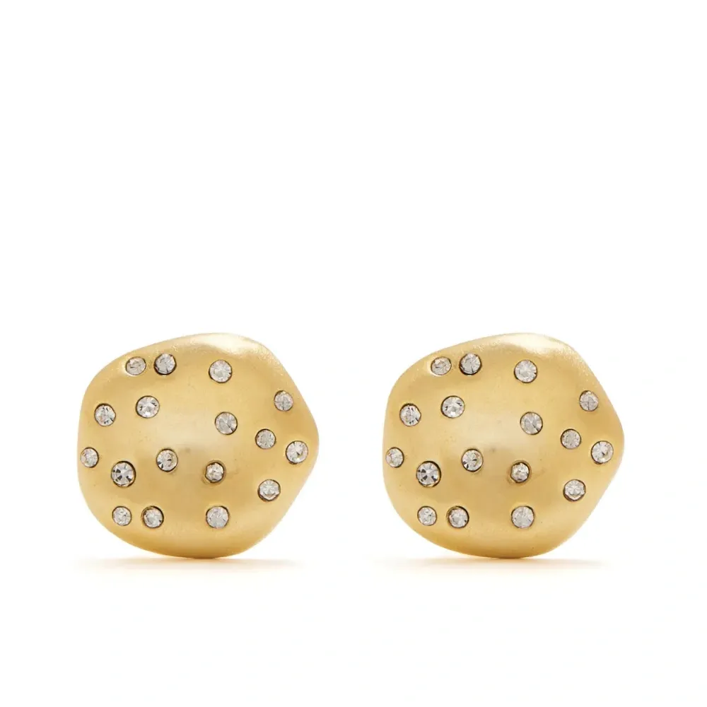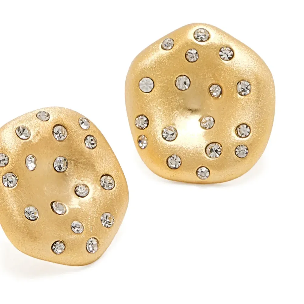Сережки с золотистым покрытием, украшенные декоративными элементами. Поставляются парой.