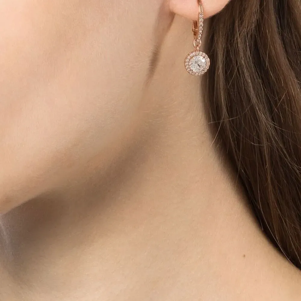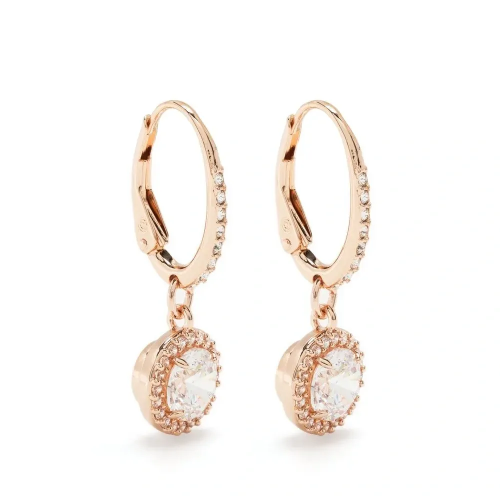 Розовое золото, декор из кристаллов, серьги-подвески, застежка-штифт и для проколотых ушей. В комплект входят две серьги.