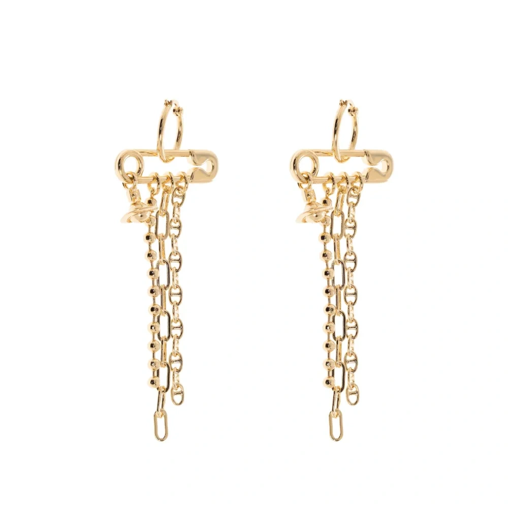 золотистый оттенок деталь в виде английской булавки подвеска в виде сферы эти серьги идут в паре