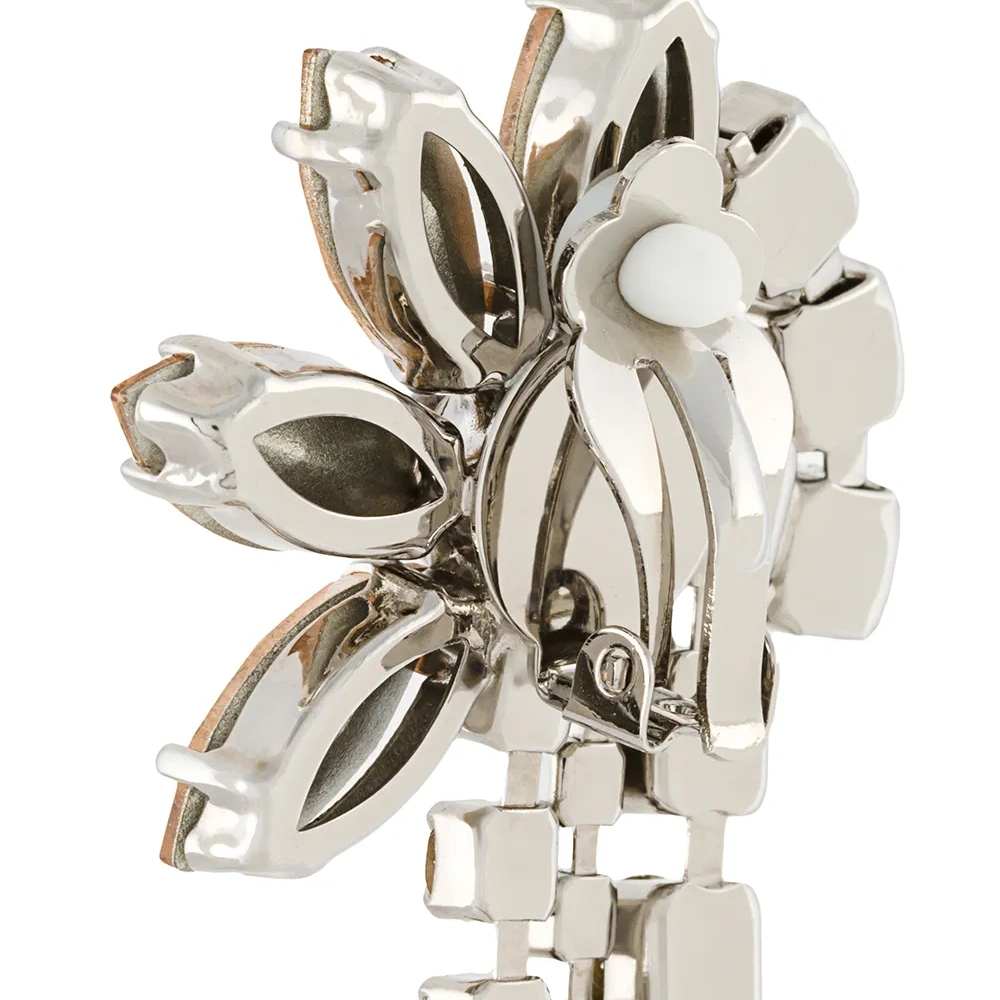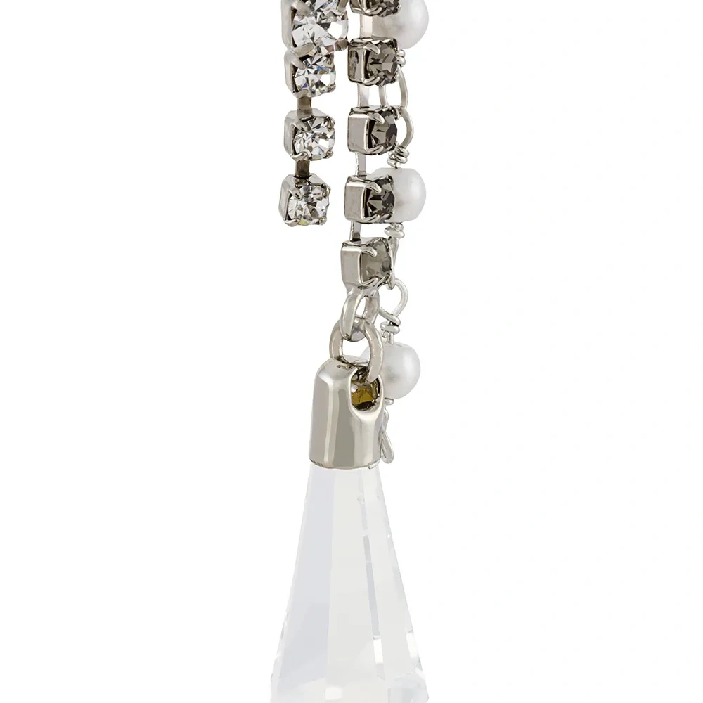 Серебристые металлические длинные серьги с цепочками и отделкой стразами от MSGM.