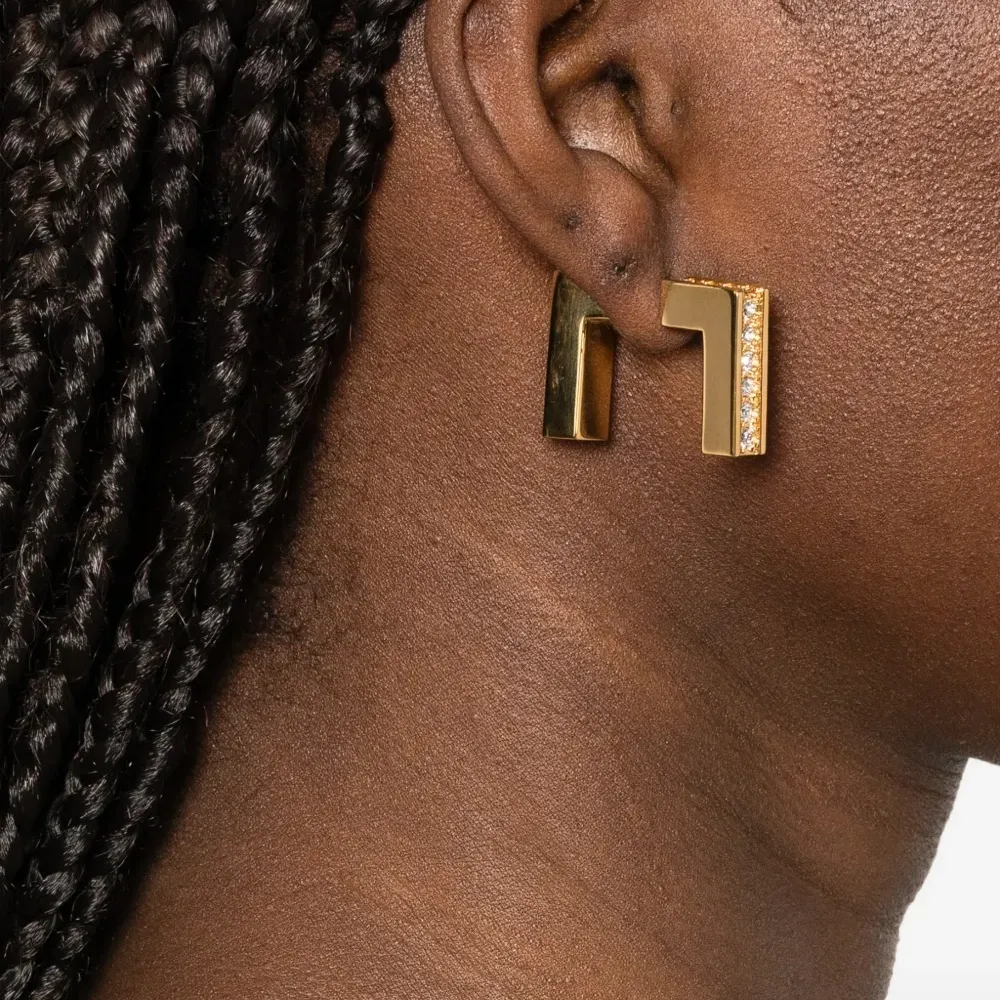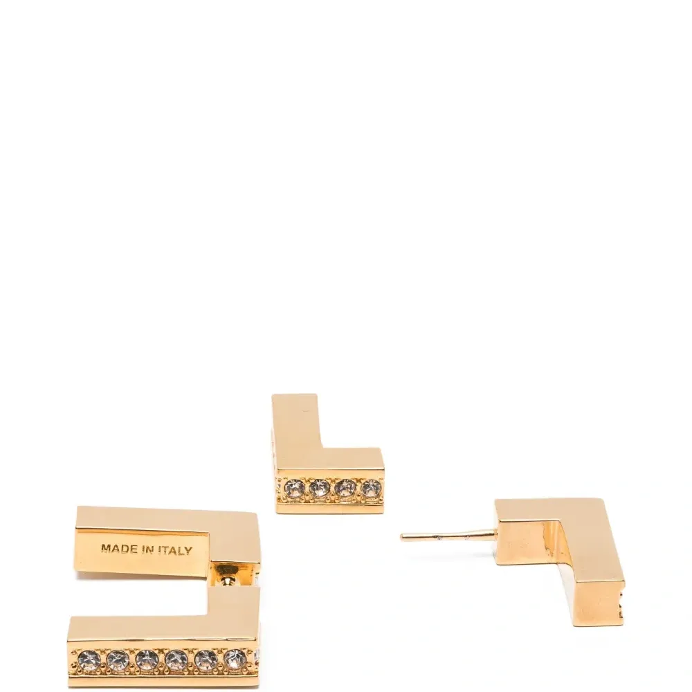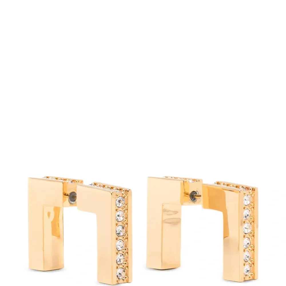 золотистые серьги с инкрустацией кристаллами, застёжка-гвоздик. Оригинальная коробка в комплекте. Эти серьги продаются парой. Обычное ежедневное использование и воздействие внешних факторов могут уменьшить блеск драгоценных камней и золотых поверхностей. Для ухода используйте специальные неабразивные средства, предназначенные для чистки ювелирных изделий.