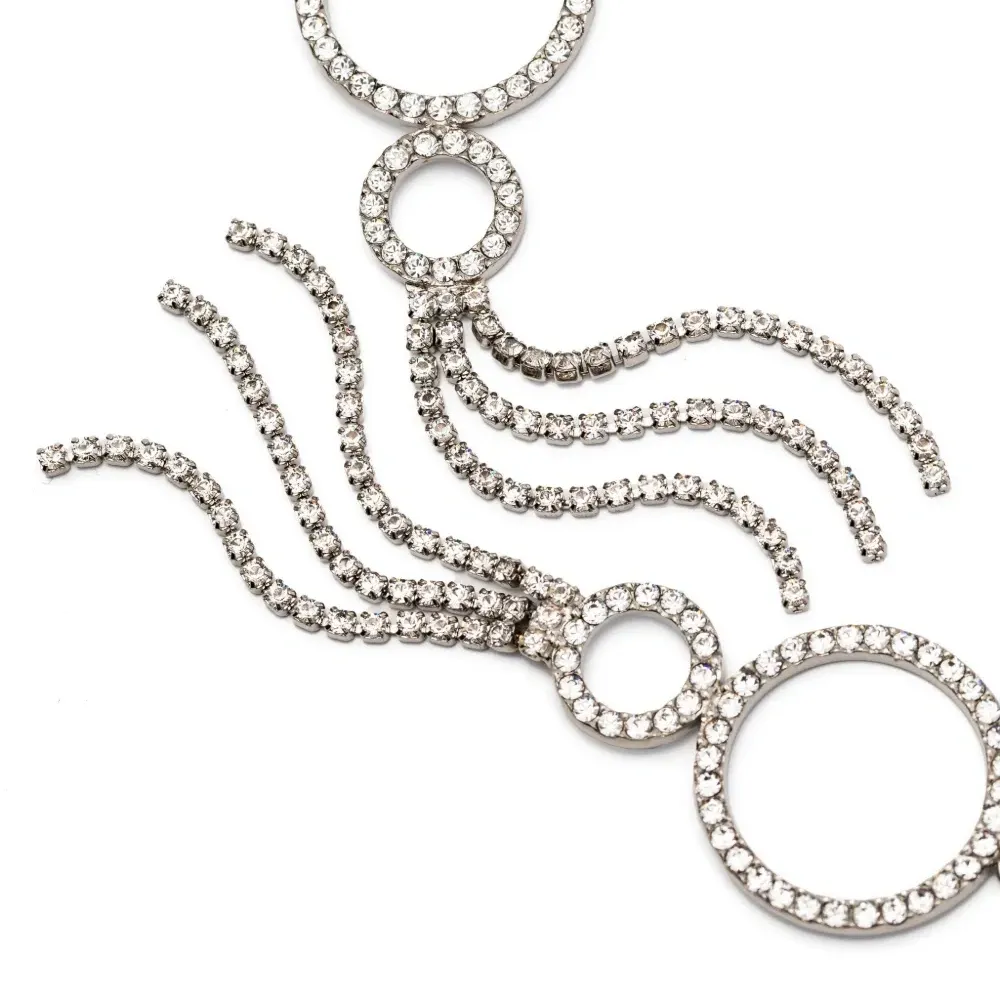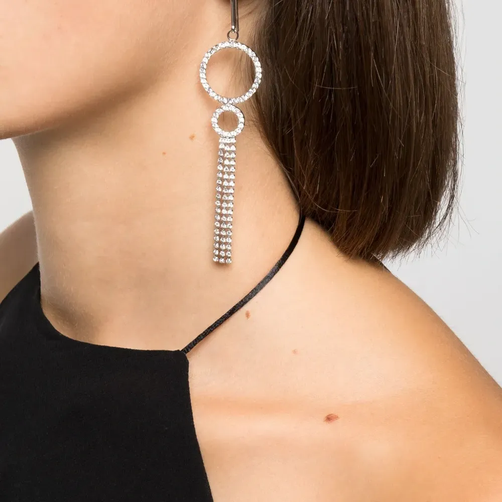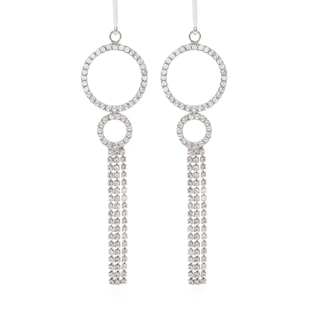 Серебристый, серьги-подвески, украшения из горного хрусталя и круглая подвеска. В комплект входят две серьги.