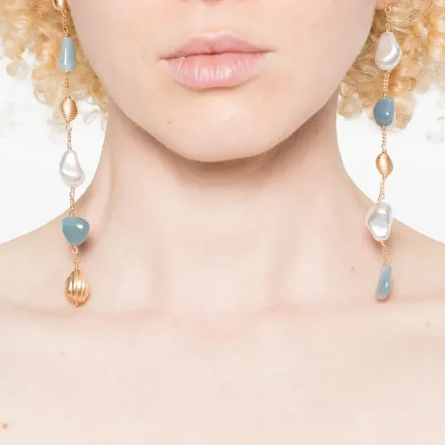 золотистый оттенок полированная отделка дизайн с подвесом изящная цепочка декор из искусственного жемчуга декор из камней застежка-гвоздик Серьги продаются в паре.