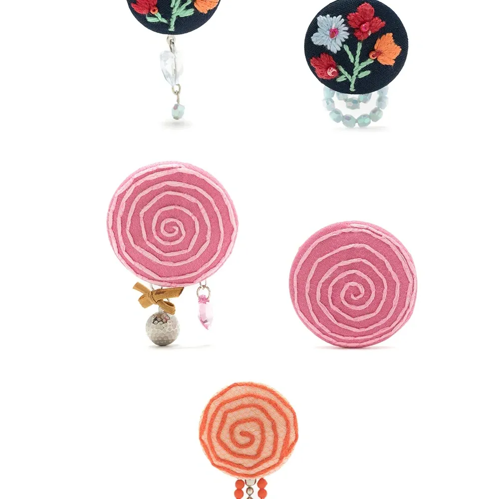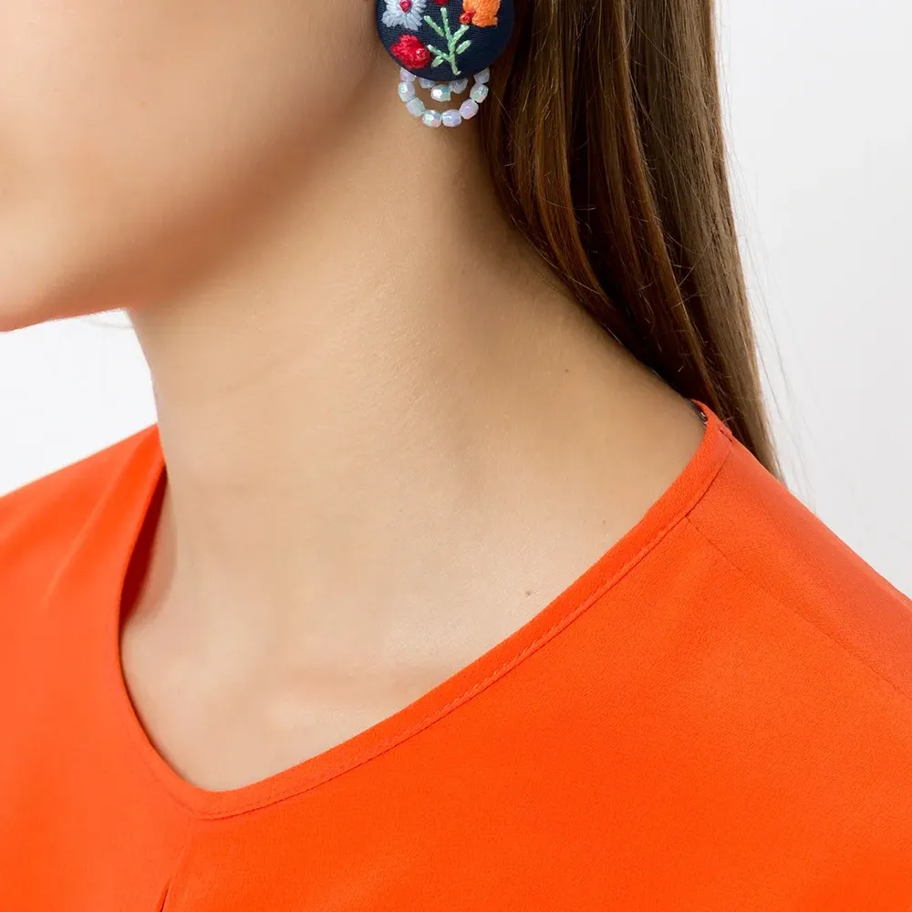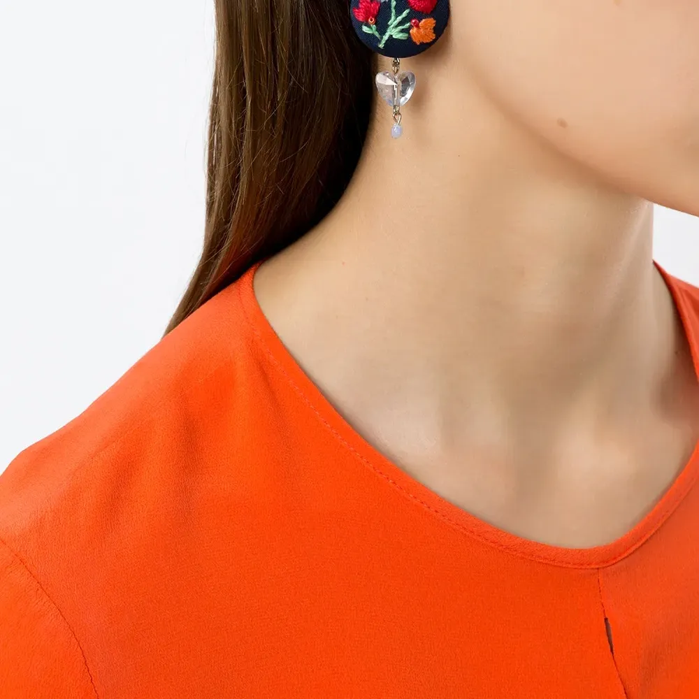 Комплект из трех пар серег от Amir Slama. Вышитая деталь, подвески и застежка-бабочка.