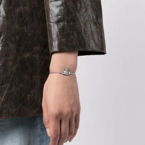 Серебристый, цепочный браслет, знаковый декор Orb, декор из кристаллов, застежка-карабин и глянцевая фактура. Узнать больше о том, какие товары получают отметку «Ответственный выбор», можно из материала «Как мы оцениваем экологичность и этичность».