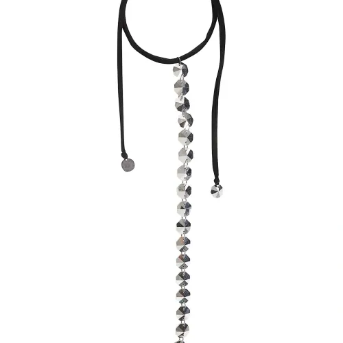 черная подвеска с кристаллами, завязывающаяся, с регулируемой посадкой