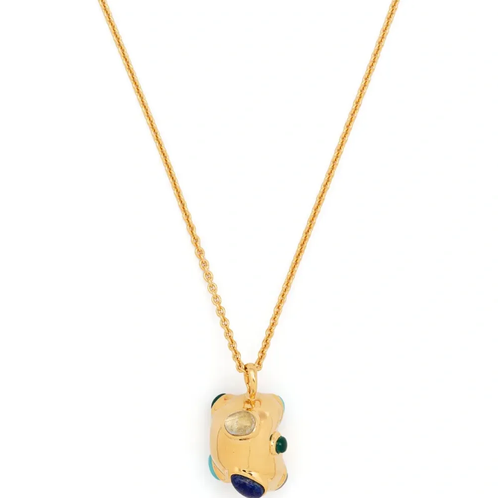 Золотистый, разноцветный, серебро 925 пробы, вставки из халцедона, бирюза, лазурит, аквамарин, украшение из поделочных камней, подвеска-акцент, покрытие из 18-каратного золота, канатная цепь, застежка-карабин и регулируемый дизайн.