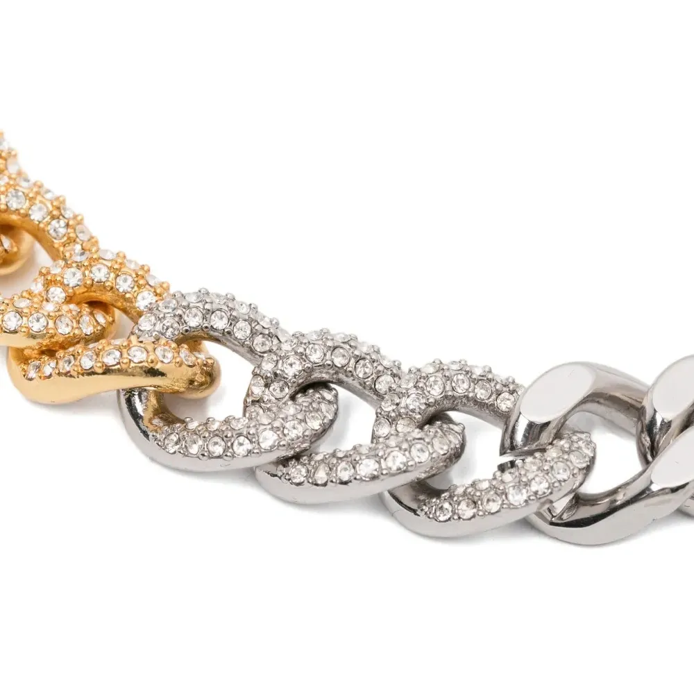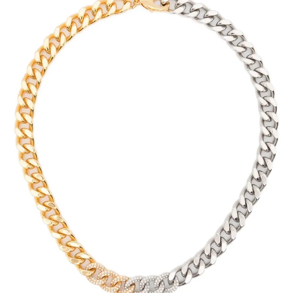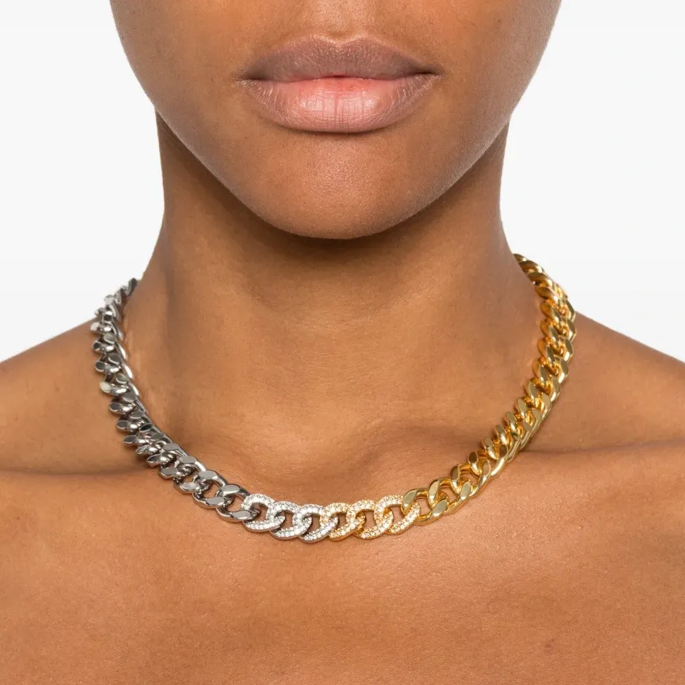 золотая и серебряная цепочка, украшенная цирконием, застежка-карабин