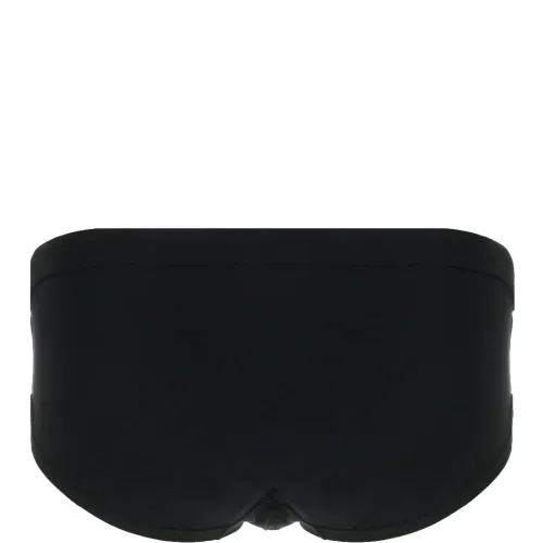 Черный, эластичный материал, нашивка с логотипом спереди, кулиска на талии и шнурки с логотипом.